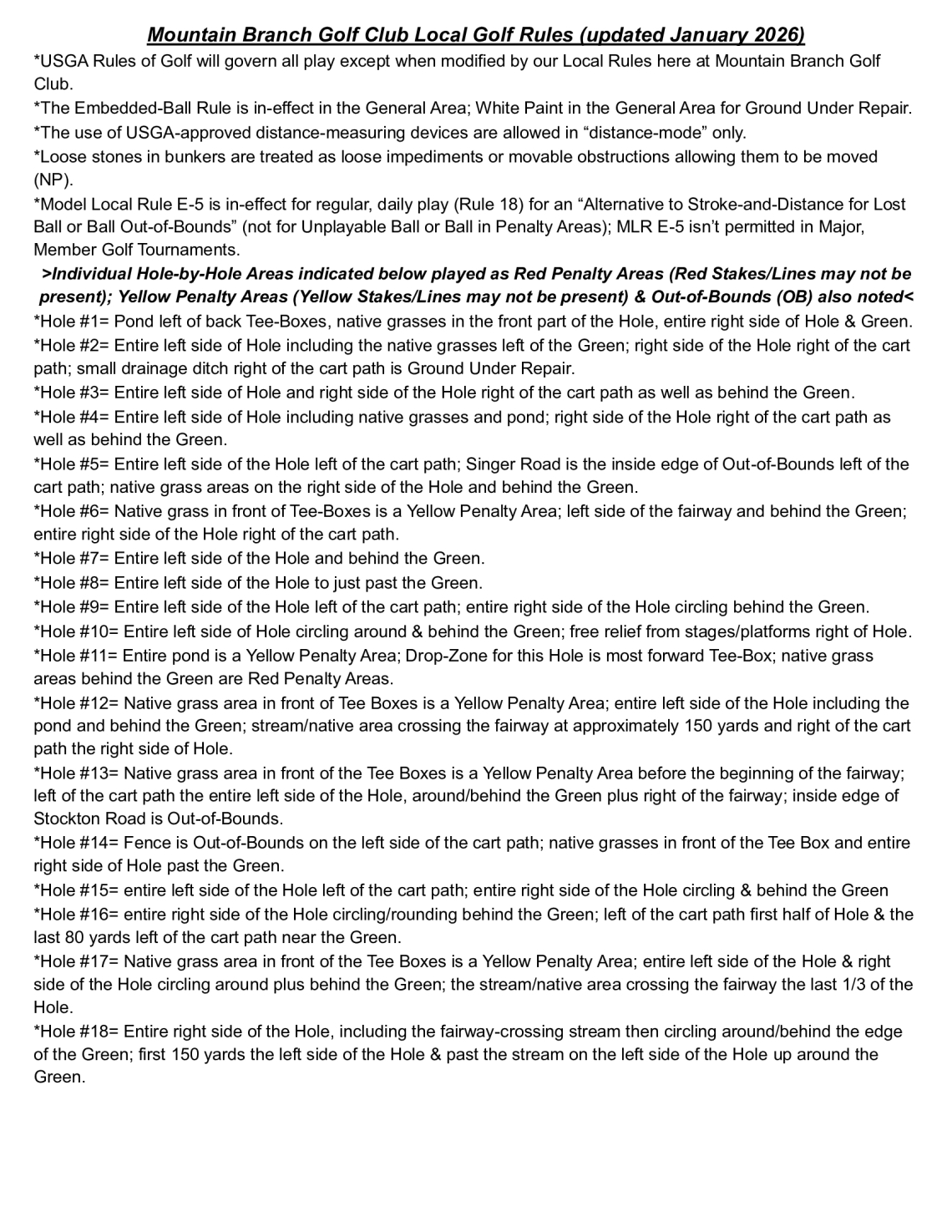 Mountain Branch Golf Club Local Rules